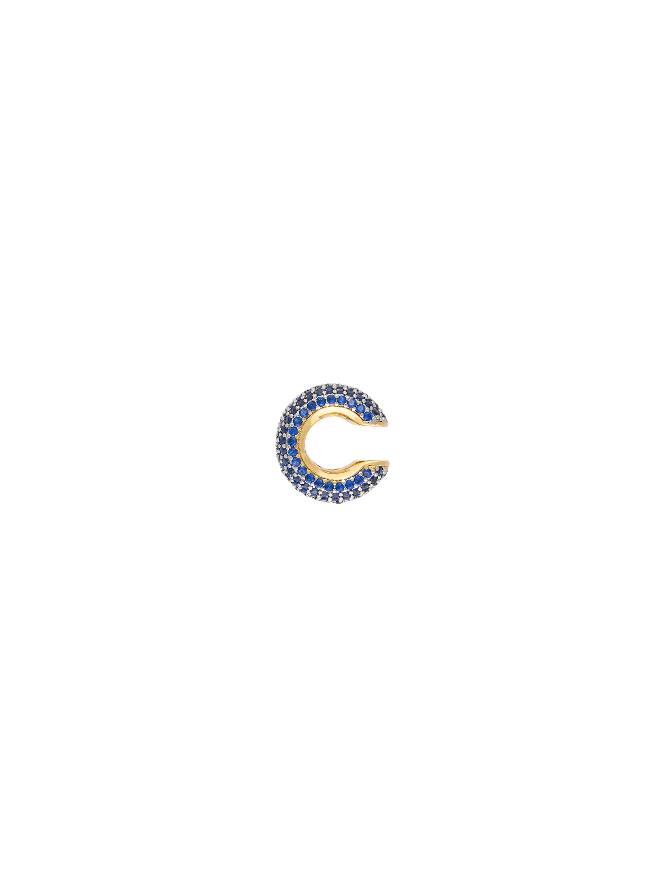 El Earcuff de Microcristales Zafiro Rodio es una pieza que envuelve la oreja con un destello sutil y magnético. Su silueta curva abraza el contorno con naturalidad, creando un efecto envolvente que equilibra delicadeza y carácter.