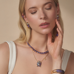 Nuestras joyas están elaboradas en plata y bronce, bañadas en oro de 18k y rodio, y adornadas con piedras naturales, cristales y esmaltes selectos.