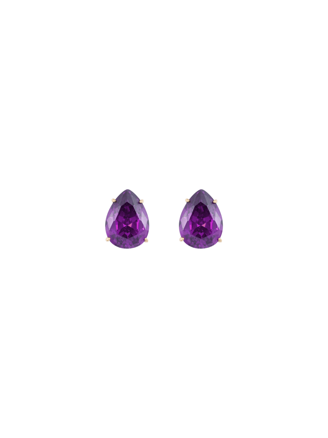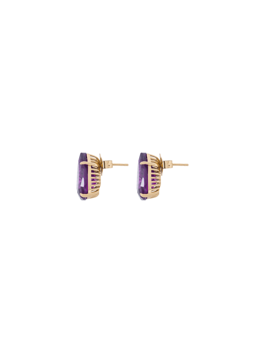 Elaborados en una mezcla de bronce y plata, bañados en oro de 18 kilates y adornados con un cristal facetado amatista, son el perfecto accesorio para complementar tus looks del día y la noche.
