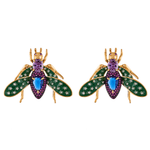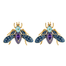 Los Topos Vespa Ra Verde Amatista, inspirados en el dios egipcio Ra, irradian poder y sofisticación con su diseño único en metal bronce, baño de oro de 18 kilates y rodio negro. Adornados con circones en tonalidades amatista, azul petróleo, cristal y rubí, complementados por un toque de esmalte verde musgo, son el accesorio perfecto para quienes buscan capturar la esencia de lo celestial y lo terrenal en cada detalle.