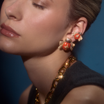 Our jewelry is made of silver and bronze, plated with 18k gold and rhodium, and decorated with natural stones, crystals and select enamels.