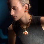 Our jewelry is made of silver and bronze, plated with 18k gold and rhodium, and decorated with natural stones, crystals and select enamels.