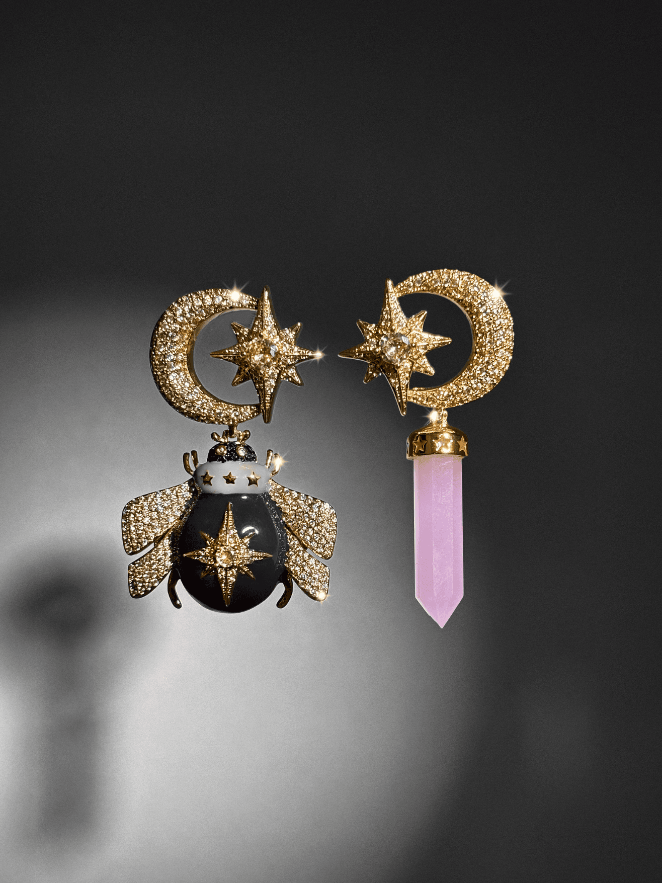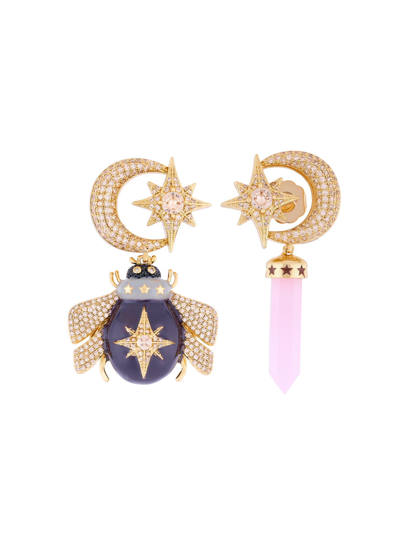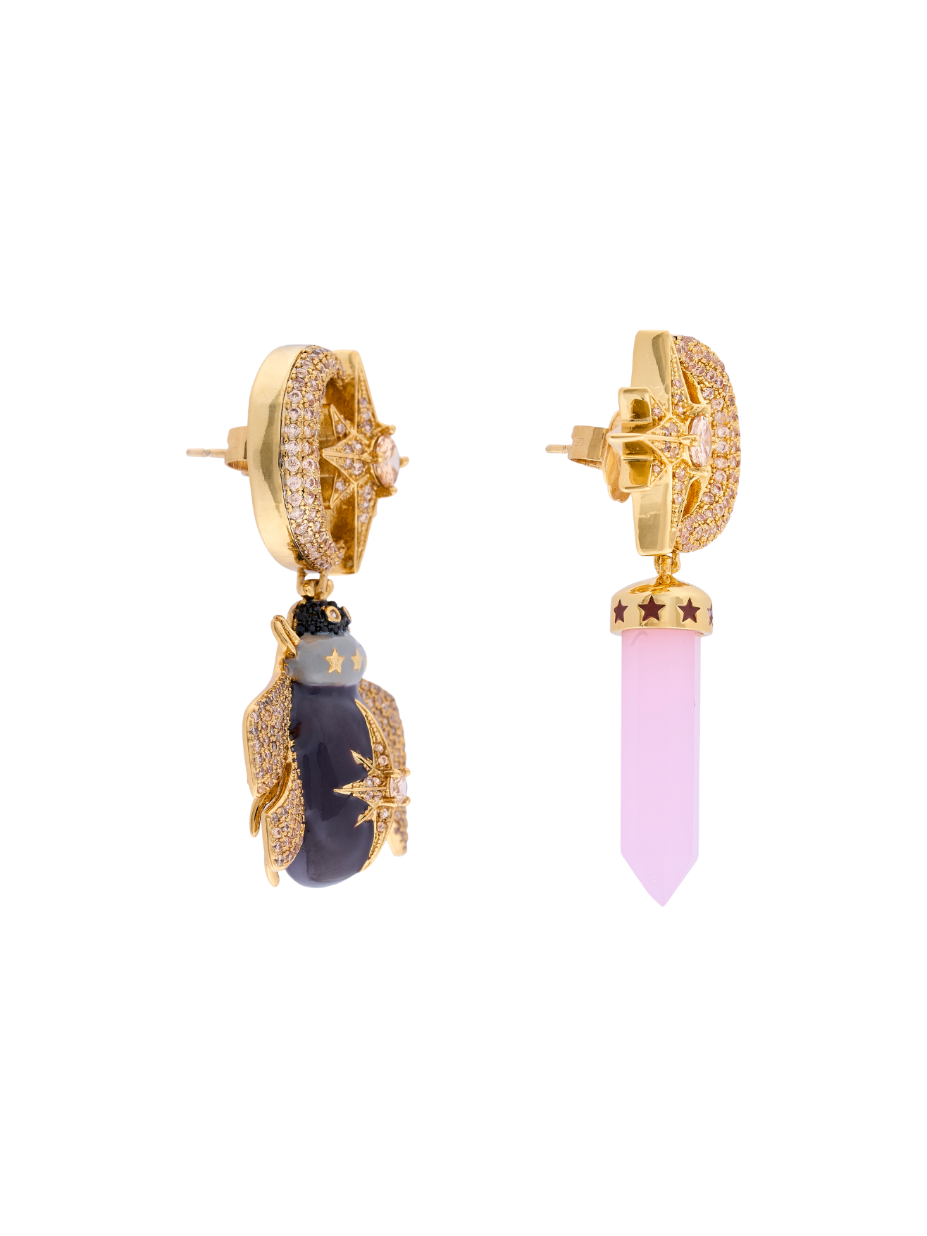 Our jewelry is made of silver and bronze, plated with 18k gold and rhodium, and decorated with natural stones, crystals and select enamels.