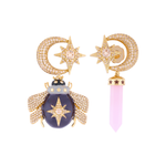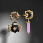 With a design that fuses the celestial and the earthly, the Emerald Green Mini Thot Topos stand out for their classic elegance and unique details. Crafted from bronze metal with 18-karat gold plating, white rhodium, and black rhodium, they are adorned with enigmatic crystals in crystal and onyx hues. The emerald green enamel technique adds a touch of balance and sophistication, perfect for any time of day!