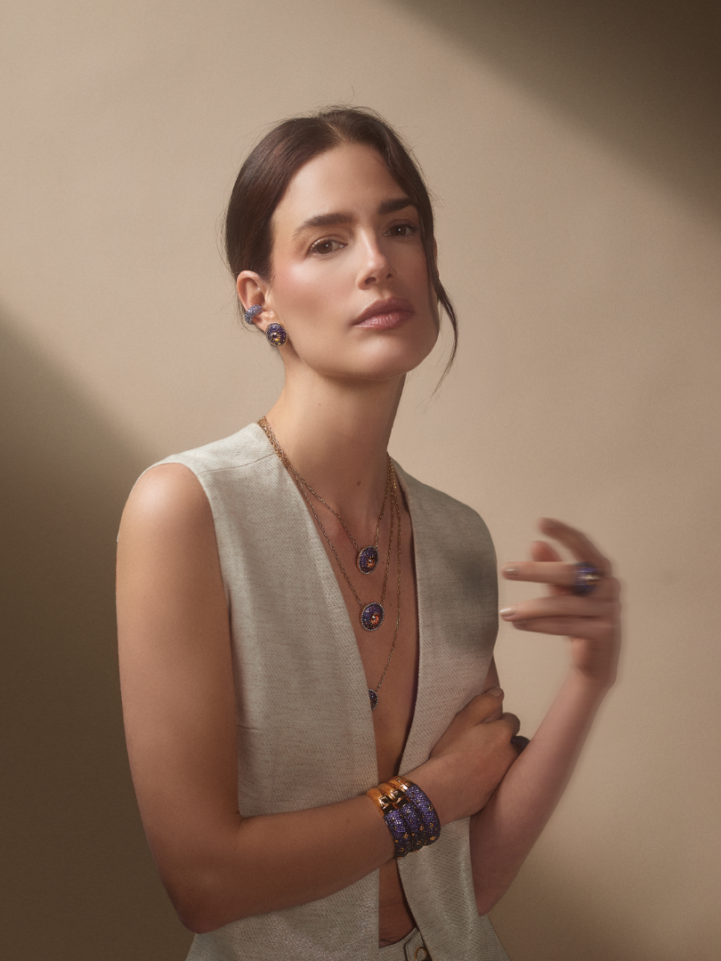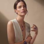 Our jewelry is made of silver and bronze, plated with 18k gold and rhodium, and decorated with natural stones, crystals and select enamels.