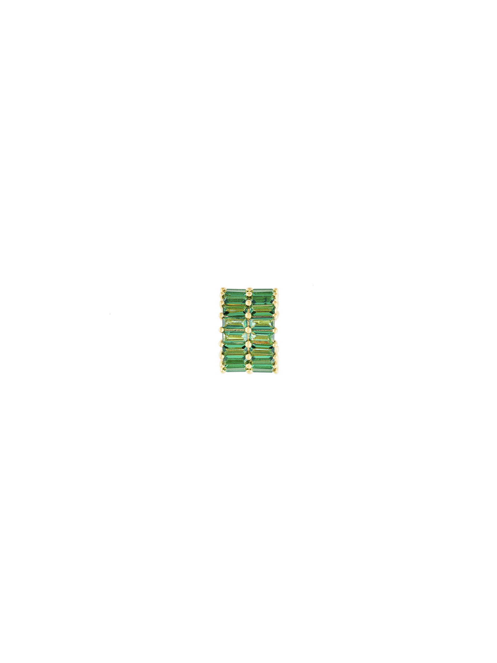 Ear cuff made of bronze metal with 18K gold plating and emerald-colored crystal inlays.