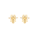 Cada pieza está elaborada en una base dorada, con alas con cristales y detalles en microcristales en tono cristal que aportan luminosidad y contraste. Los ojos en tono cristal añaden elegancia y brillo distintivo que convierte estos aretes en una pieza única.