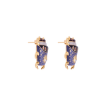 Elaborados en metal bronce con baño en oro de 18 kilates y baño de rodio, y adornados con microcristales en tono rubí y cristal. Técnica de esmaltado en diferentes tonos de morado. Pines y mariposas en plata de ley 925.