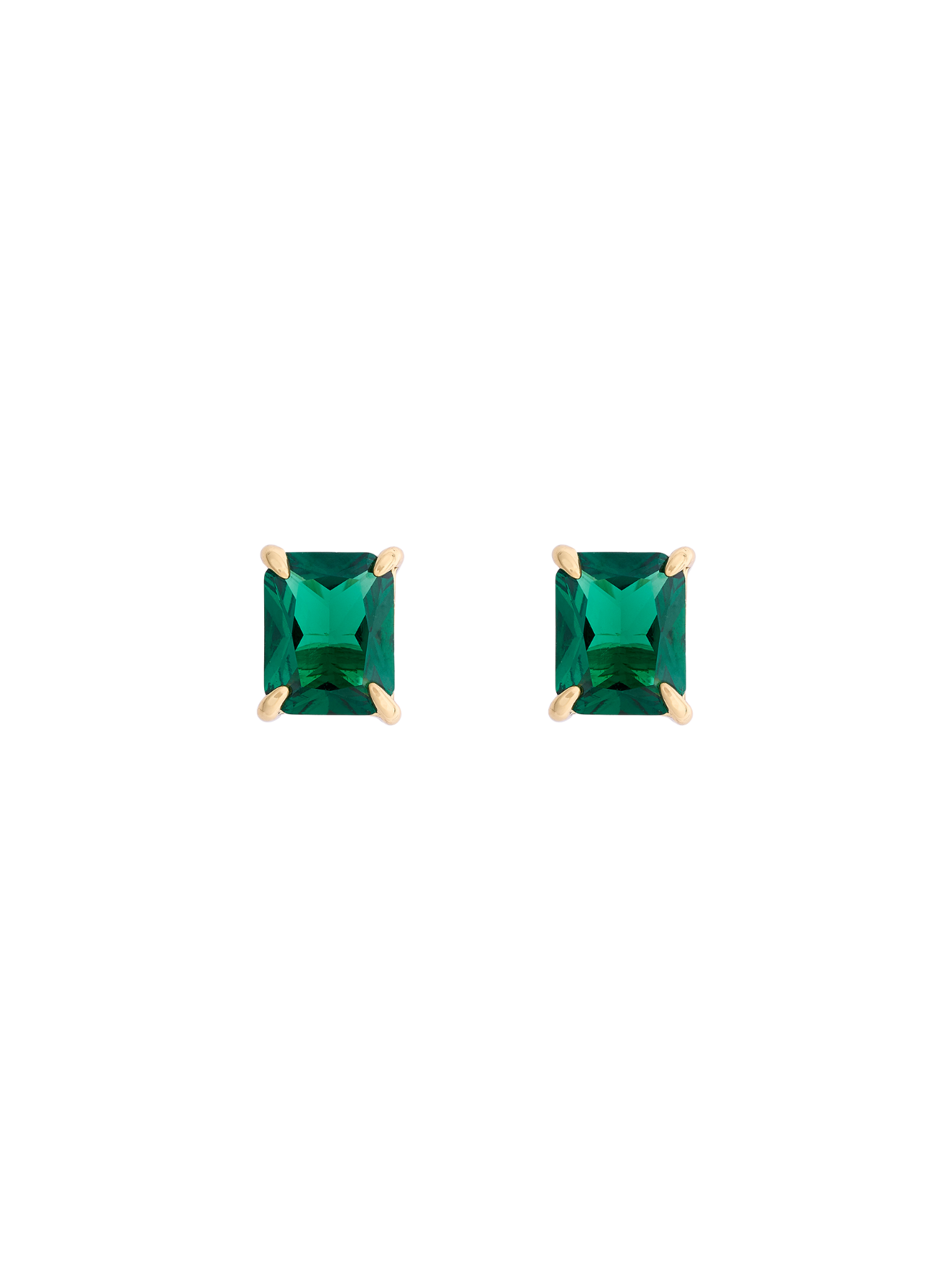 Los Topos Rectangulares en tono verde esmeralda, engastados en una base dorada, son una pieza de diseño preciso y luminosidad intensa, ideal para un toque de sofisticación contemporánea. Un diseño minimalista y elegante que aporta un toque de color vibrante a cualquier look.