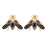 Los Topos Vespa Ra Negro Cristal, inspirados en el dios egipcio Ra, irradian poder y sofisticación con su diseño único en metal bronce, baño de oro de 18 kilates y rodio negro. Adornados con circones en tonalidades onyx y cristal complementados por un toque de esmalte onyx, son el accesorio perfecto para quienes buscan capturar la esencia de lo celestial y lo terrenal en cada detalle.